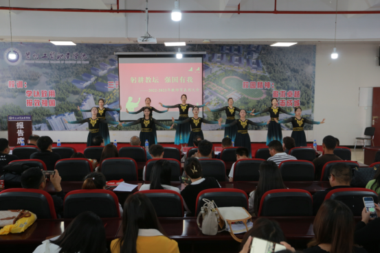 在表彰大会期间学生以歌曲、舞蹈、朗诵等多种艺术形式,表达对教师的感恩、祝福、礼赞和致敬。