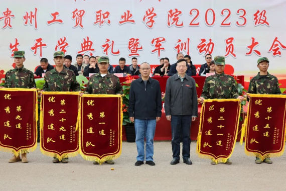 校党委书记徐锋、党委副书记、校长黄士安为“优秀连队”颁发锦旗并合影