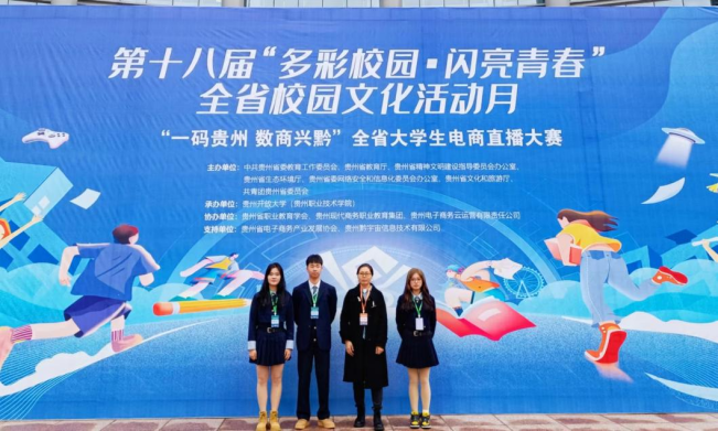 近日,在中共贵州省委教育工委、贵州省教育厅、贵州省精神文明办、贵州省环保厅、贵州省网信办等多家单位联合主办,贵州省开放大学(贵州技术职业学院)承办的第十八届“多彩贵州˙闪亮青春”全省校园文化活动月、贵州省第一届电商直播比赛,beat365师生经过激烈角逐,由杨盼、符候强两位老师带领的乡村振兴产业学院(现代商务学院)22级财务管理班肖航宇、龙宇婷,艺术学院22级舞蹈班梁金凤摘得二等奖。