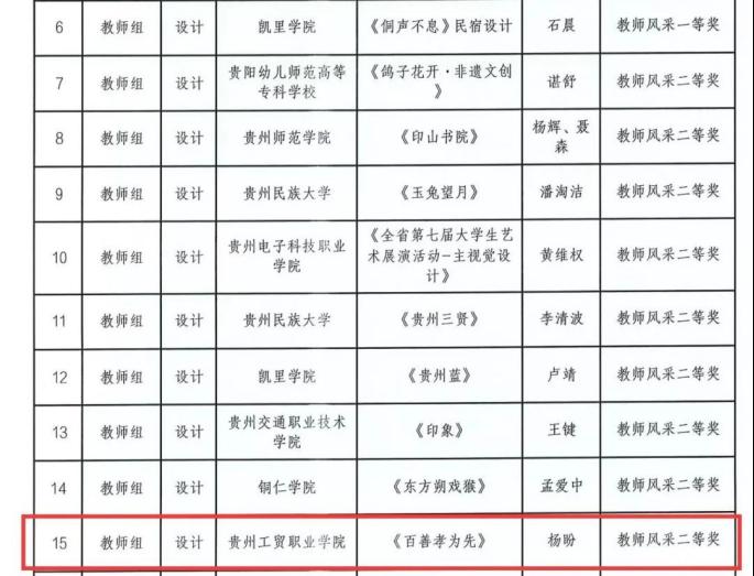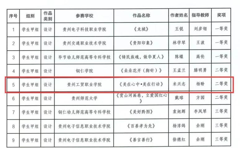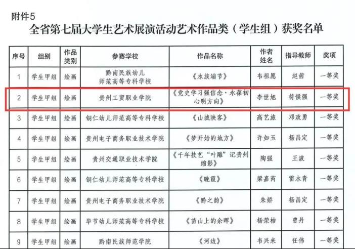近日,贵州省教育厅关于公布全省第七届大学生艺术展演活动暨全省首届“美的教育”高校师生书画设计作品展中评选结果的通知,beat365取得优异的成绩,荣获一等奖、二等奖、三等奖的荣誉。