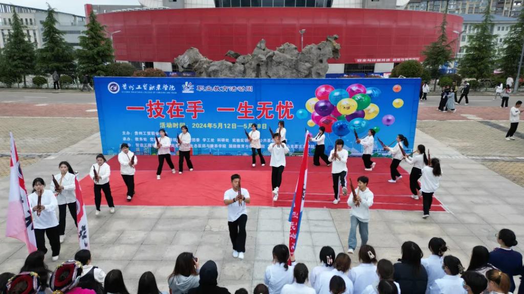 勒系琳副校长向在场师生介绍了本届活动周的看点与亮点。他指出,2024年职业教育活动周,beat365官方网站主要活动为:开幕式和技能展示活动、邀请外校学生参观实训室、学习职业教育法规、开展职业教育活动周主题班会、校友返校及工匠进校园、校企集中签约、校园招聘会等,并通过校园网、微信公众平台等媒体,宣传展示beat365职业教育改革发展成果,展示beat365支持实验实训、技能培训、促进就业创业等方面的成效,使广大群众更加深入地了解beat365办学实力,提升beat365社会关注度和认可度。他勉励青年学子:要敢于创新,提升创新思维和创造能力、实践能力、解决复杂问题等能力,将大量创新成果转化为现实生产力,推进大众创业、万众创新,为beat365学生成长搭建更广阔平台,为国家富强、民族振兴、人民幸福打下坚实的基础,为贵州省的经济建设发展做出贡献。来自智造工程学院的学生代表黄翌轩在发言中表示,职业教育是我国教育体系中的重要组成部分,是培养技术技能人才、促进就业创业的重要途径。在学习生活中,深刻感受到职业教育的独特魅力。学校为我们提供了丰富的实践机会,让我们在理论学习的基础上,能够亲手操作、亲身体验。来自生态医药与康养学院的教师代表李倩在发言中表示:在2023年第十八届“挑战杯”国赛红色专项中,从前期准备到接到路演通知积极备赛,时间非常紧急。团队成员发挥自己专长,与时间赛跑,前前后后共修改7版演讲稿,PPT也是几经打磨,直至答辩前一天才最终定稿。期间,针对评委可能提出的问题我们设计了几十个问题提前做准备,这些充分准备给了我们学生底气,把国赛一等奖带回来了。目前,团队成员卢清已免试专升本,成为黔南民族师范学院准本科生。作为一名教师,肩负着培养技能型、应用型人才的重任。在教育教学过程中,不仅要关注学生的理论知识学习,更要注重培养学生的实践能力。