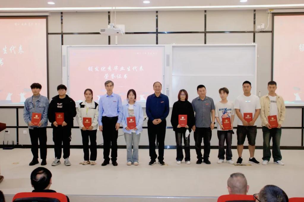 校党委副书记、校长李建萍,校党委委员、副校长李新发为获得省级“优秀毕业生”荣誉称号的毕业生代表颁发证书。