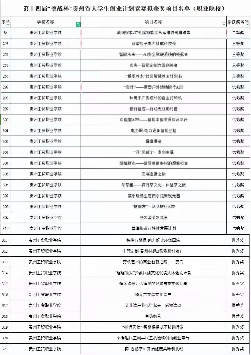 第十四届“挑战杯”贵州省大学生创业计划竞赛拟获奖项目名单(职业院校)