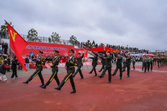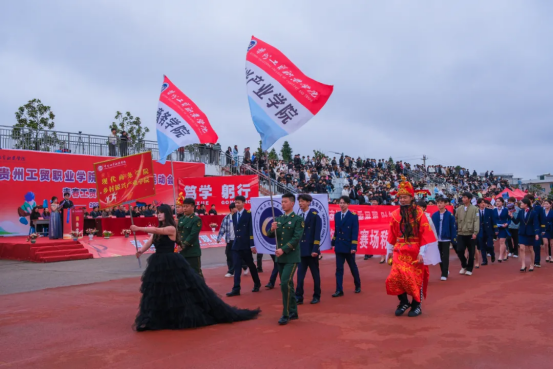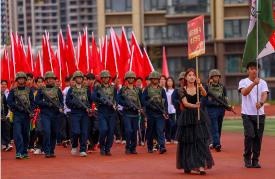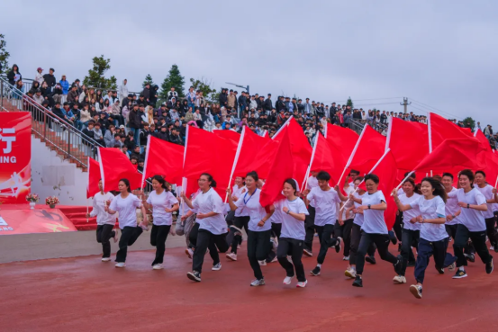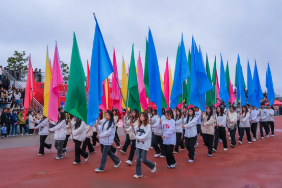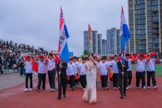 开幕式在激昂的方阵入场式中拉开序幕。国旗方阵与校旗方阵率先入场,庄严肃穆;彩旗方阵以斑斓色彩点燃全场;裁判员方阵步履铿锵,彰显公正精神。各二级学院方阵紧随其后,自信从容入场,诠释着团结奋进、积极向上的精神,将蓬勃朝气与昂扬斗志洒满整个运动场。