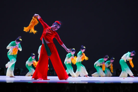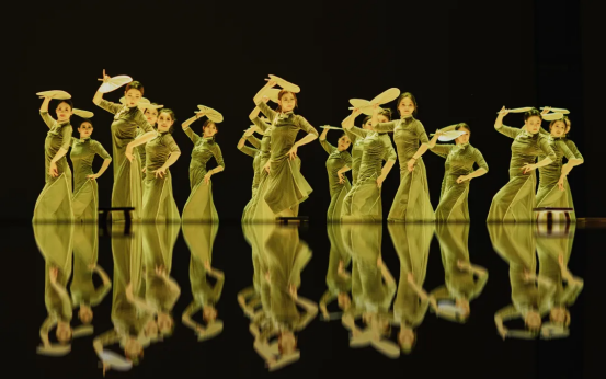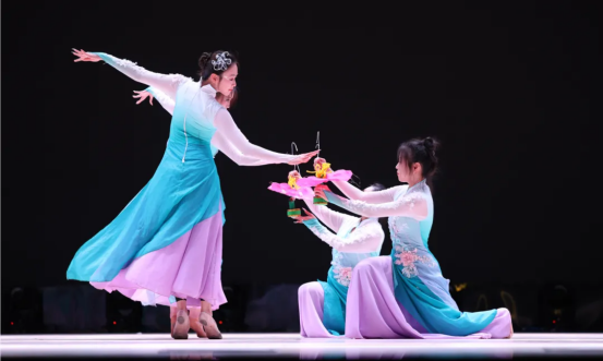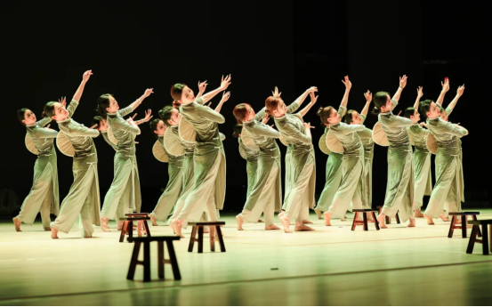 《阿西里西》《不落的太阳》《花·花儿》《泉映腰肢》《心弦》《倒摇臂》等精心编排的舞蹈节目轮番登场。舞者们用灵动的肢体语言、饱满的情感投入和精湛的技艺,生动诠释中华民族多元的艺术魅力与深厚的文化底蕴,瞬间将观众带入艺术世界。《渔光曲》以板凳蒲扇舞的方式呈现了上海弄堂女人的生活细节;《鹤影·草海谣》情感细腻,舞者生动地塑造了国家一级保护动物黑颈鹤的优雅形象与灵动神韵,巧妙地将地域生态特色融入艺术表达。群舞《幸福的脚步》,双人舞《葬花—舞剧<红楼梦>片段》,群舞《一路稻花》,独舞《沂蒙山小调》,群舞《芳菲蔓影月明中》,群舞《亮剑空天》,群舞《拉丁爵士串烧》等充分彰显2023级舞蹈表演专业学子扎实的专业功底与对艺术的深刻理解。