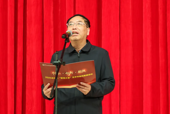 演出伊始,校党委副书记、校长李建萍发表致辞。李建萍代表全体师生向莅临现场的各位嘉宾表示热烈欢迎!向为本次活动倾注心血的师生团队致以衷心感谢和诚挚敬意!李建萍指出,全校上下要深入践行习近平文化思想精神内涵;要紧扣国家教育方针,以“五育融合”为纲,深入实施美的教育;要搭建高规格技能展示平台,让每一份创意在聚光灯下绽放,让每一次掌声成为通向职业未来的桥梁。李建萍强调,当前,艺术学院正在筹建 “黔西北传统艺术研究院”,致力于打造“三位一体”文化品牌的核心,建设省级高校美育实践创新基地的基础,让课堂延伸至田野,让理论扎根于乡野的支点。