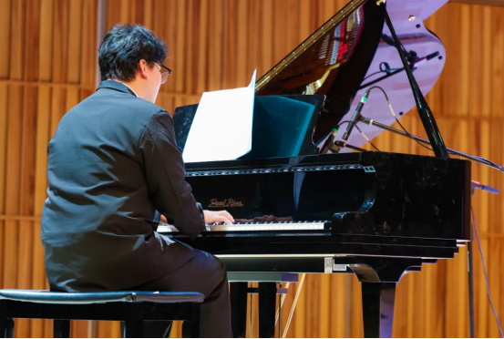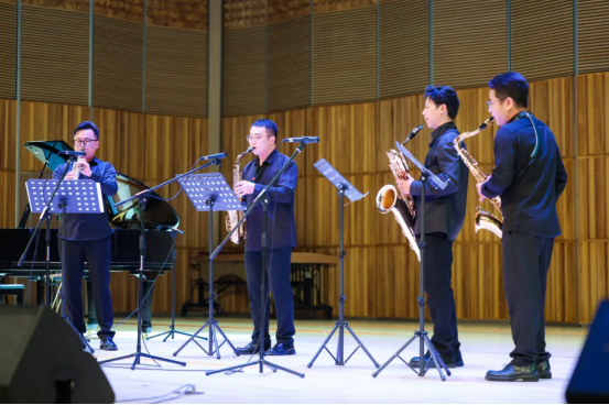 糜忠林演唱的《两地曲》,该作品以柔情浪漫的爱情为题材,充满诗情画意。《降A大调第三叙事曲》既有温柔抒情的部分,又有展现蓬勃活力的段落,尤润达在演奏时将两种风格巧妙地融合,让台下观众都能感受到蕴含其中的百般滋味。萨克斯四重奏给观众带来的是高桥宏树、杜鸣心笔下的奇幻音画,由任青、丁义、付玮晗、田庆阳以四重奏形式生动呈现,青年教师们以精准的节奏把控与默契配合,带领观众穿梭于游乐园的梦幻与现实之间。