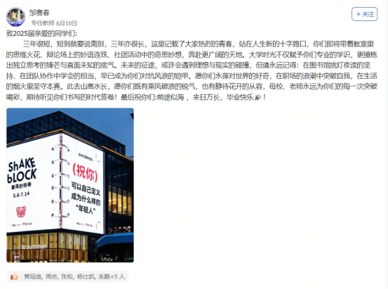 贵州工贸职业学为致敬这场青春的奔赴,学校精心策划“草海之夏”艺术系列展演,以多元仪式为2025届毕业生的青春加冕。6月4日,“廿三年舞笙歌·辰海漾春华”——2023级舞蹈表演专业汇报演出率先登场;6月6日,“歌咏辰海·乐育未来”——学校青年教师专场音乐会倾情献奏,用音符传递师长的祝福;6月10日,“匠心筑梦,风采成华”2025毕业文艺晚会璀璨上演,将离别氛围推向高潮;6月11日,毕业典礼如期举行,成为这场盛大告别的最核心注脚。典礼之外,一份独特的浪漫温暖了每一位毕业生的心——学校特别定制的毕业戒指,成为学子与母校间永恒的实体纽带。校园各处亦精心装点,主题鲜明的毕业季拍照打卡点、悬挂着暖心祝福语的横幅……浓厚的惜别与祝福氛围,让贵工贸的每一个角落都成为毕业生们定格青春印记的珍贵背景。