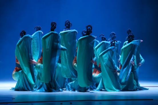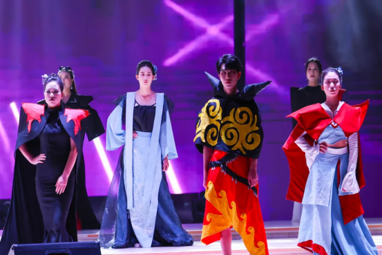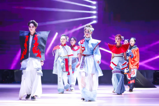 传统与创新,在此刻交汇。T台秀《技韵霓裳·非遗焕新》将苗绣、蜡染等非遗元素与现代剪裁巧妙融合,模特步履从容,衣袂翩跹。而舞蹈《雨涧春行图》则以柔美婉约的肢体语言,描绘出溪涧潺潺、新绿初萌的意境,少女们轻盈旋转、水袖轻扬,恍若春雨拂过心田,无声滋养万物生长。