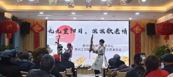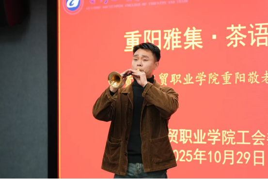 茶话会在隆重的氛围中拉开帷幕。艺术学院李林峰老师带来唢呐独奏《我的祖国》,激昂嘹亮的旋律抒发深沉的爱国情怀。随后,苏晓燕老师倾情演唱歌曲《望月》,其婉转悠扬的歌声,深情寄托对远方亲人的思念与祝福,契合了重阳节“思亲敬老”的文化内涵,引发在场人员的深切共鸣。