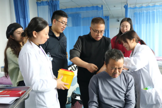 廖烨纯现场施诊,为病人进行彝医飞针治疗