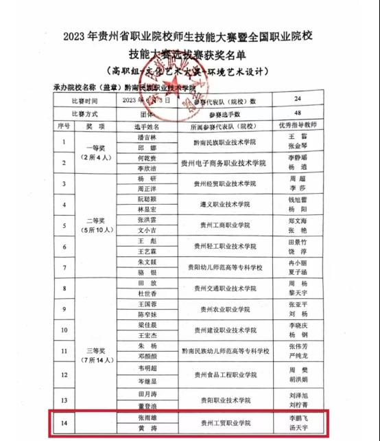 为贯彻落实中共中央办公厅、国务院办公厅印发的《关于加强新时代高技能人才队伍建设的意见》,大力推进“技能贵州”行动,推动信息技术与高等教育教学融合创新发展,艺术分院组织学生积极参与技能大赛。