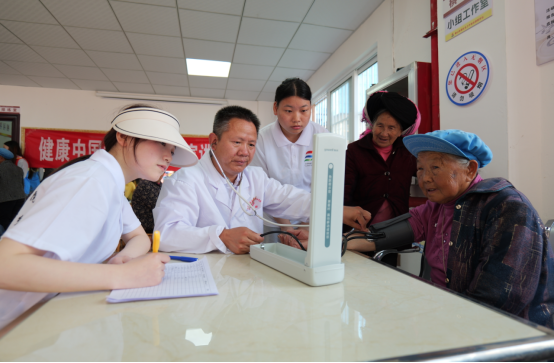 在宣讲活动结束后,组织健康与体育分院护理相关专业学生和老师在社区开展了医疗服务,给社区老人测量血压、现场指导社区儿童开展紧急救援、传播急救理论知识等。