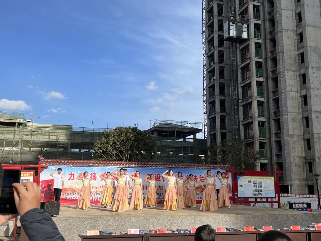 在文艺演出中,艺术学院表演团队围绕“大力弘扬宪法精神,建设社会主义法治文化”这一主题,带来了丰富精彩的文艺节目,舞蹈《不忘初心》、《快板》等节目依次登台,用舞蹈、说唱、情景剧、诗朗诵、大合唱、等群众爱看、易懂的文艺表演形式呈现,将宪法、防范电信诈骗、普法宣传教育融入其中。