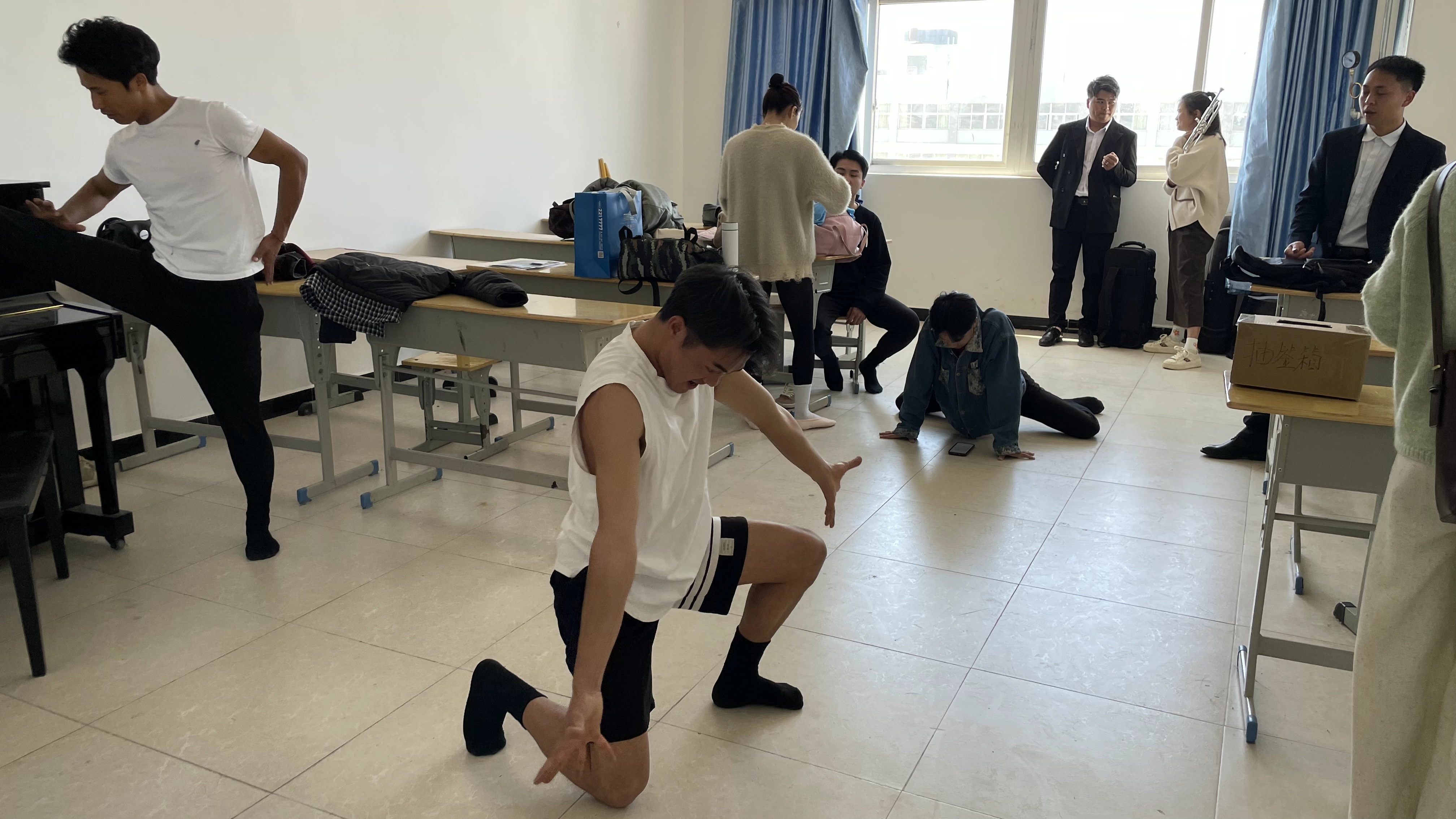 应聘者按照面试时间来到候场室排队签到,他们怀着激动的心情等候面试,有的做着热身运动、有的清喉练声,为即将到来的面试做最后的准备。这体现出他们对此次面试态度认真、对教育事业的追求与热爱。