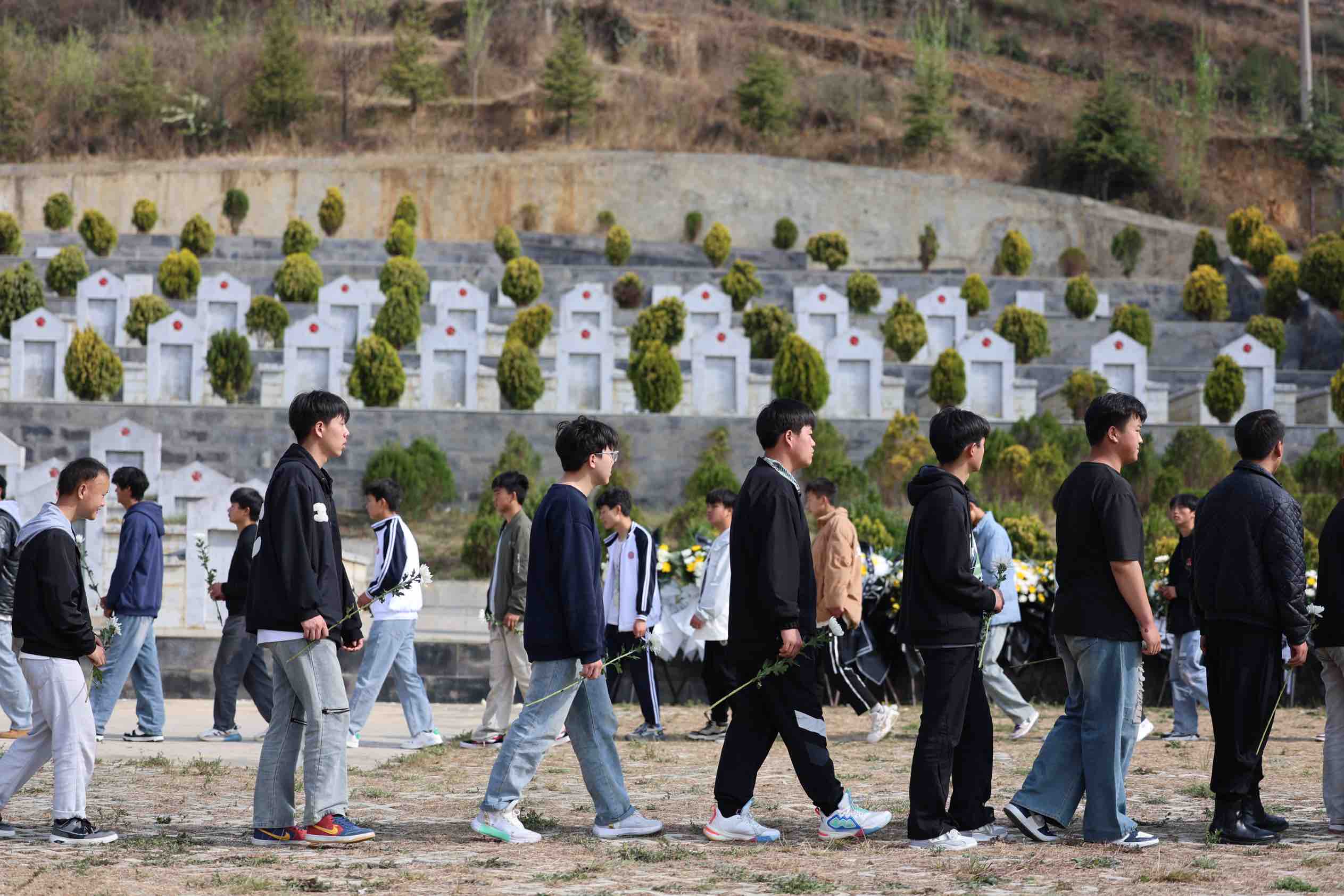 清明将至,为缅怀革命先烈,传承红色基因,弘扬爱国主义精神,4月3日上午,现代商务学院党支部联合团总支组织师生前往威宁县沙河边烈士陵园,举行了隆重的扫墓活动。活动在烈士纪念碑下庄严举行,校党委委员、现代商务学院党支部书记勒系琳、现代商务学院院长杨一梅、团总支书记袁优、全体党员、学生会及各班团支书等参加了此次活动,本次活动由现代商务学院团总支书记袁优主持。在烈士陵园门口,全体师生肃立,整齐列队,大家手持鲜花,步履肃穆,缓缓踏进烈士陵园。首先,学生代表向革命烈士敬献花篮,表达对革命先烈的深切怀念。全体师生向烈士们默哀一分钟纪念的英烈,为他们的伟大牺牲致以崇高的敬意。勒系琳为英烈们致悼词,回顾了革命先烈为党和人民作出的巨大贡献,引导全体师生缅怀先烈,珍惜今日幸福生活。