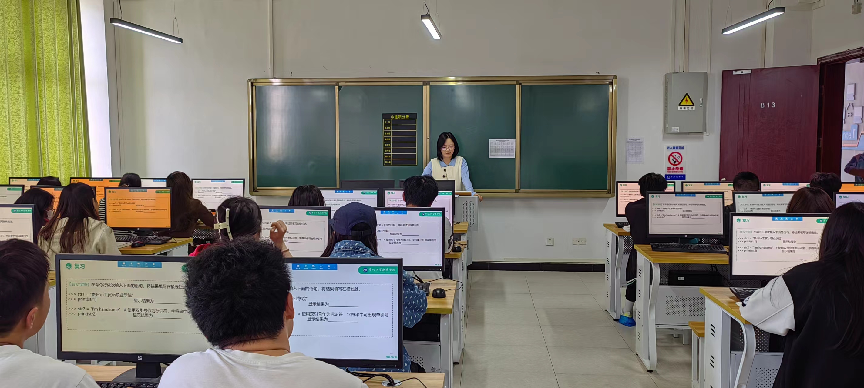 财会专业赵晗君老师的《phthon中字符串方法的使用》,课堂氛围更是生动有趣,过程中设计了多个有趣的知识竞答并逐个讲解公式指导练习,随后通过分组比赛的方式开展训练,效果显著。