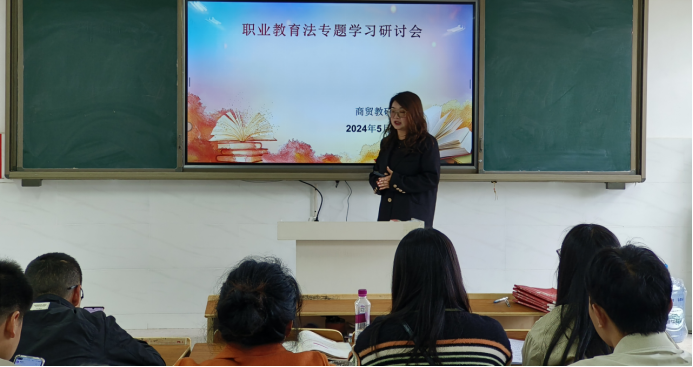 5月14日下午,常务副院长杨一梅带领全院教师开展2024职业教育法律法规和职教改革发展成果典型案例及成果专题学习。围绕新《职业教育法》修订的时代背景、修订的主要内容、新《职业教育法》的主要创新思想与理念、本次职业教育活动周的主要举措等方面进行详细解读。希望全院教师要以此为契机,继续深入了解职业教育、研究职业教育、宣传职业教育、用实际行动践行职业教育。各教研室组织深入学习职业教育相关法律法规和改革发展成功成果案例。研究讨论如何在教育教学中既传授知识技能,更能润物细无声地向学生传达职教理念,职教魅力,坚定学习的信心,树立发展目标,在职业教育的舞台上成就精彩人生。