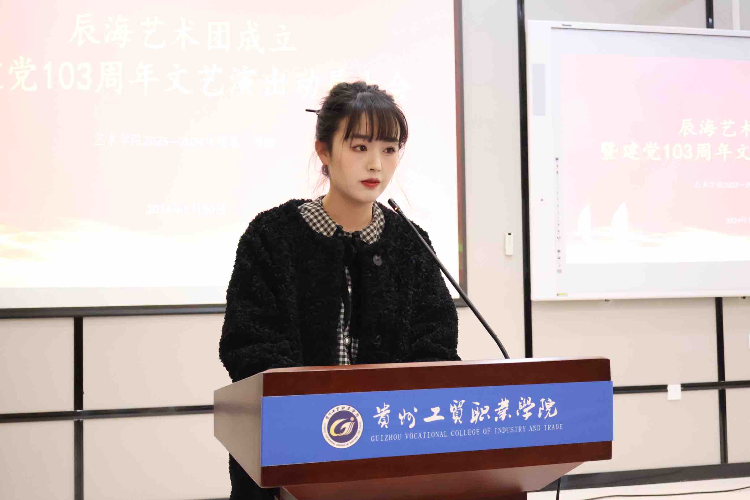 5月30日下午,艺术学院组织召开“辰海艺术团成立暨建党103周年文艺演出动员大会”,,校党委副书记、纪委书记聂立新,校党委委员、副校长宋新乐,艺术学院院长周正军,艺术团全体成员参加会议。大会由周正军主持