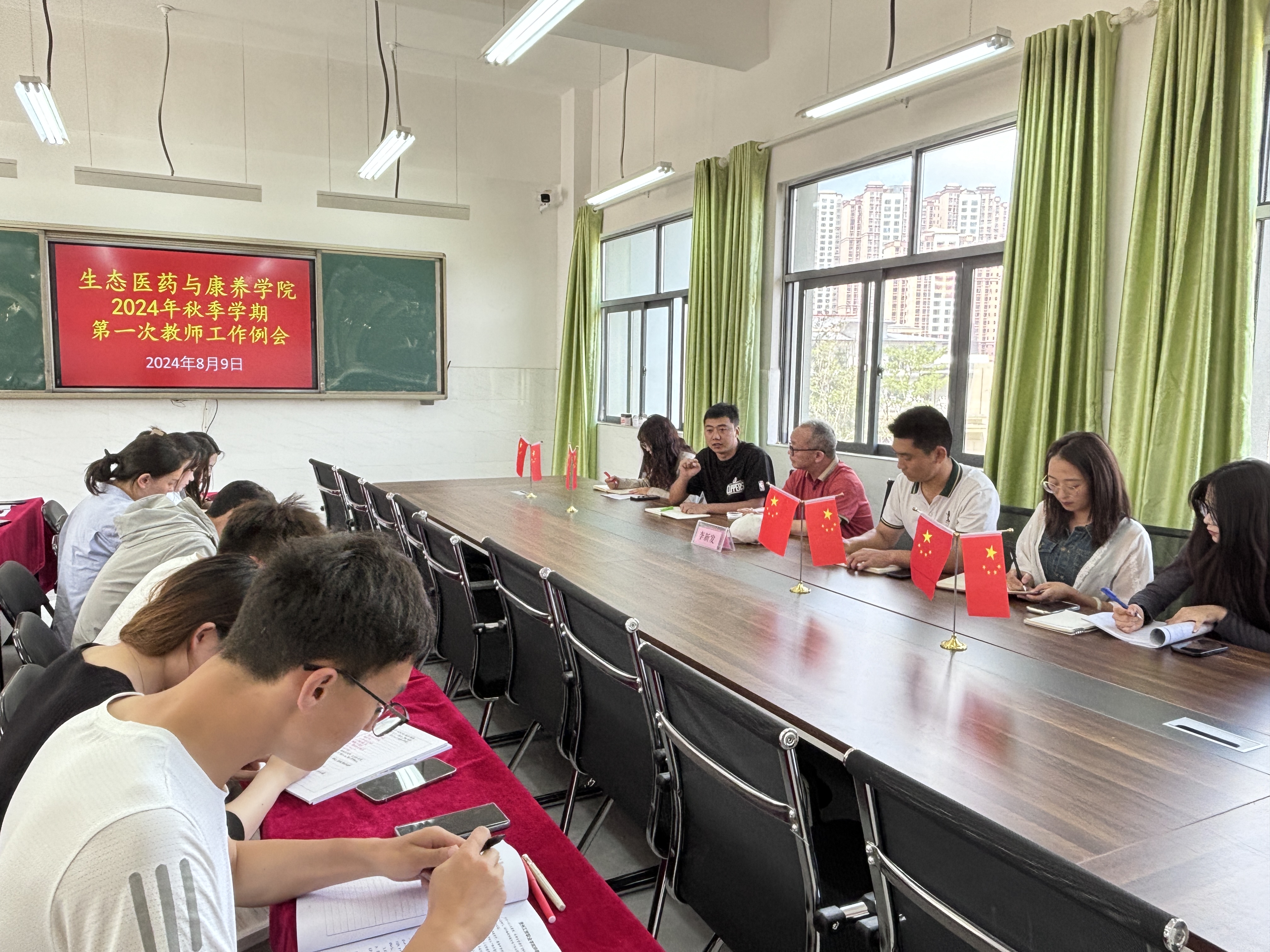 8月9日在生态医药与康养学院会议室召开2024年秋季学期第一次教师工作例会,参会人员主要有校党委委员、副校长李新发,生态医药与康养学院全体教师。本次会议由王方对主持。