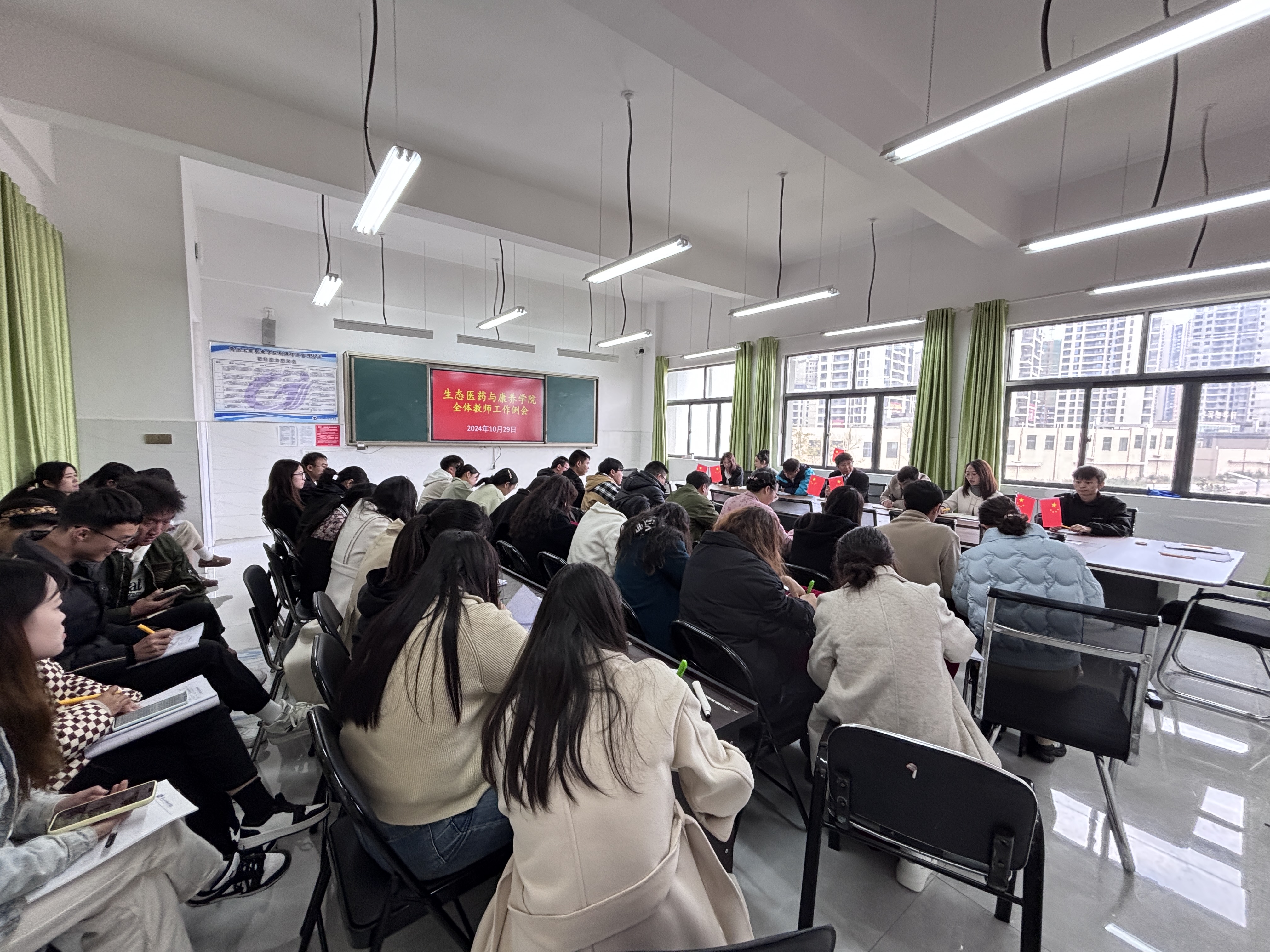10月29日在学院会议室召开生态医药与康养学院全体教师工作例会,院长阮培均、党支部书记赵英涛、办公室主任王方对、教务科科长蔡国琴、团总支书记兼学工科科长李吉咡及生态医药与康养学院全体教师参会,本次会议由王方对主持。