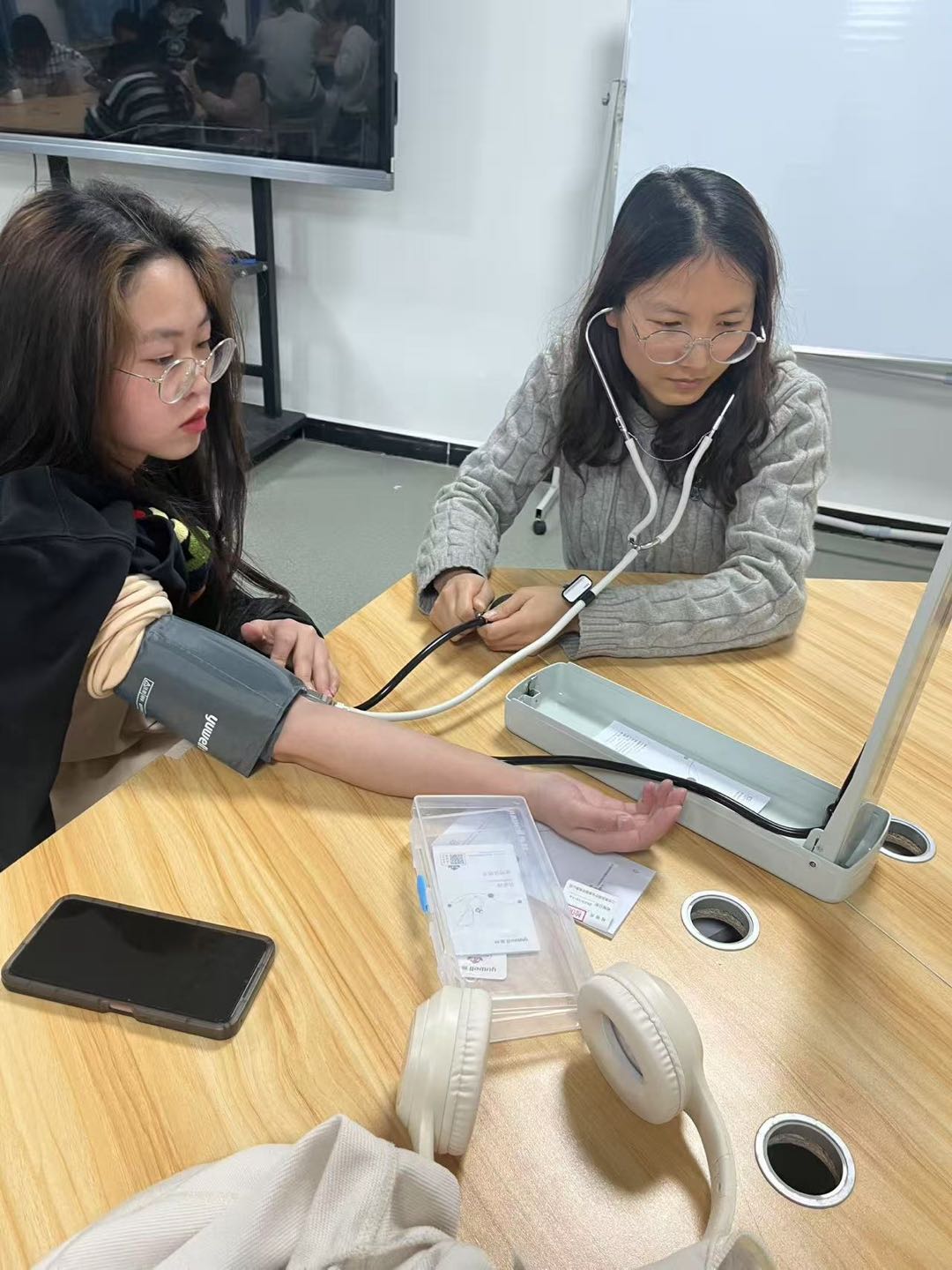 为强化学生实践能力,提升健康服务专业技能,3月25日,生态医药与康养学院康养协会在实训楼五楼护理实训室组织开展"健康守护者"血压测量实操活动。本次活动由具有丰富临床经验的马丽莎老师全程指导,通过"理论精授-仿真演示-实景操练"三位一体教学模式,为学生搭建起"学用贯通"的实践平台。