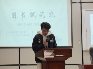3月27日,由国防教育与体育学院与图书馆联合开展的“图书漂流瓶”读书分享会在图书馆报告厅圆满落幕。本次活动在图书馆负一楼报告厅进行,国防教育与体育学院的同学参与,活动以“图书漂流瓶”为主题,使同学们在书香氤氲与思维碰撞中,共赴一场精神盛宴。活动由熊良萱同学主持