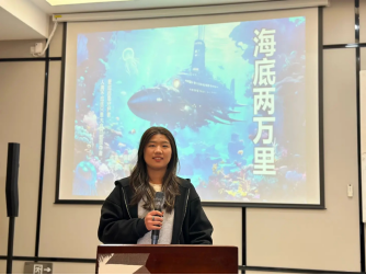 蒋卉同学通过“人类不应该只是大自然的掠夺者,更应该是守护者”这句话对作品《海底两万里》展开分享。这位同学通过对该作品的主要人物进行性格描述,从而展开对“人与自然关系”的剖析,强调人类应该与自然和谐共生,有责任保护自然环境,维护生态的平衡。