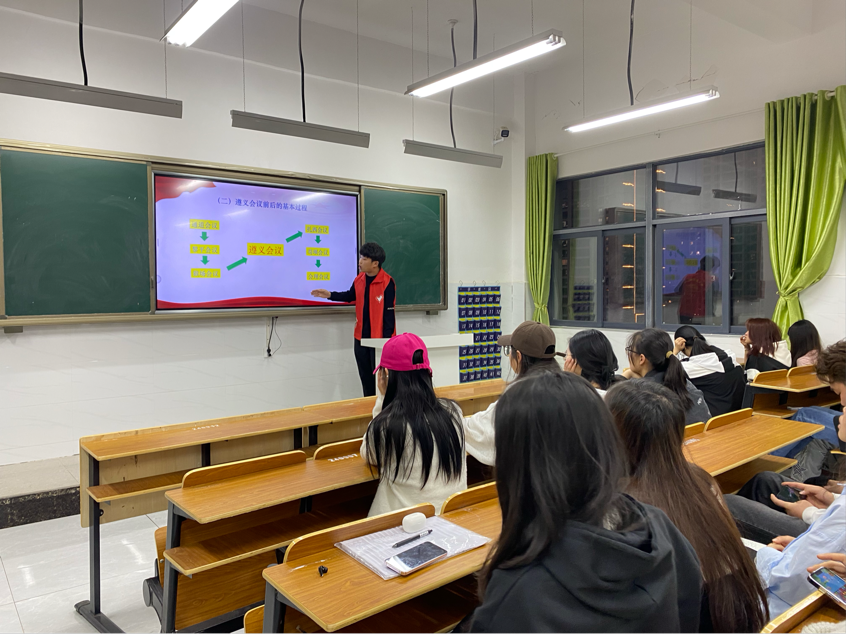 宣讲前期,宣讲团为保证宣讲质量,做了充分准备。成员们广泛查阅《遵义会议纪实》等大量历史资料,精准把握遵义会议的历史脉络;结合学生认知特点与兴趣点,制作出内容丰富、形式生动的宣讲课件;还多次组织模拟演练,反复打磨宣讲内容与表达方式。