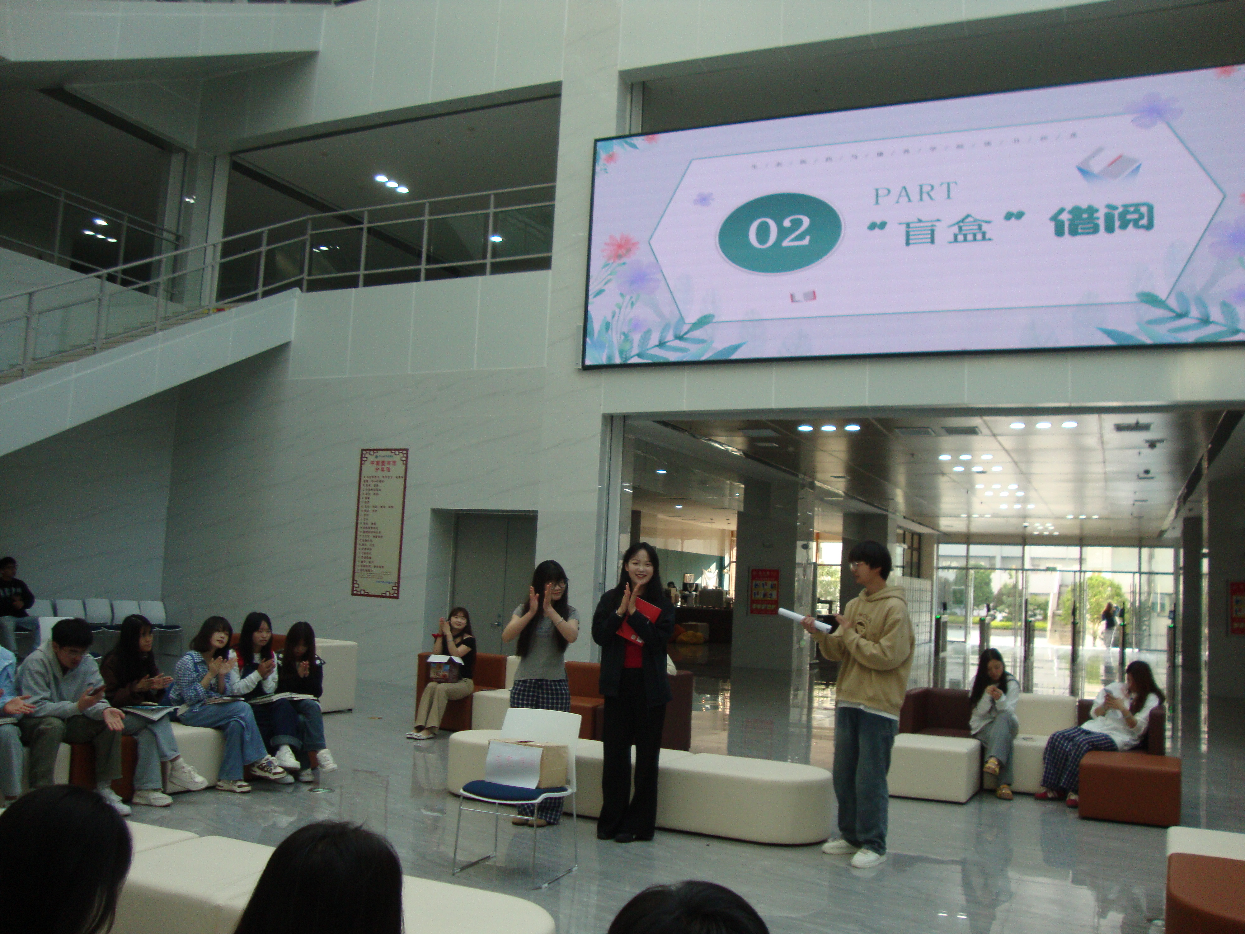 为激发学生阅读热情,营造校园浓郁书香氛围。6月8日,生态医药与康养学院与图书馆在图书馆一楼大厅联合举办"声阅之境"盲盒读书沙龙活动。此次活动以盲盒形式为诵读增添神秘色彩,吸引众多学生踊跃参与。活动现场,同学们沉浸在诵读的世界里,用声音传递着文字的魅力,或激昂慷慨,或深情婉转。本次活动由生态医药与康养学院护理2班罗玉杰同学主持。