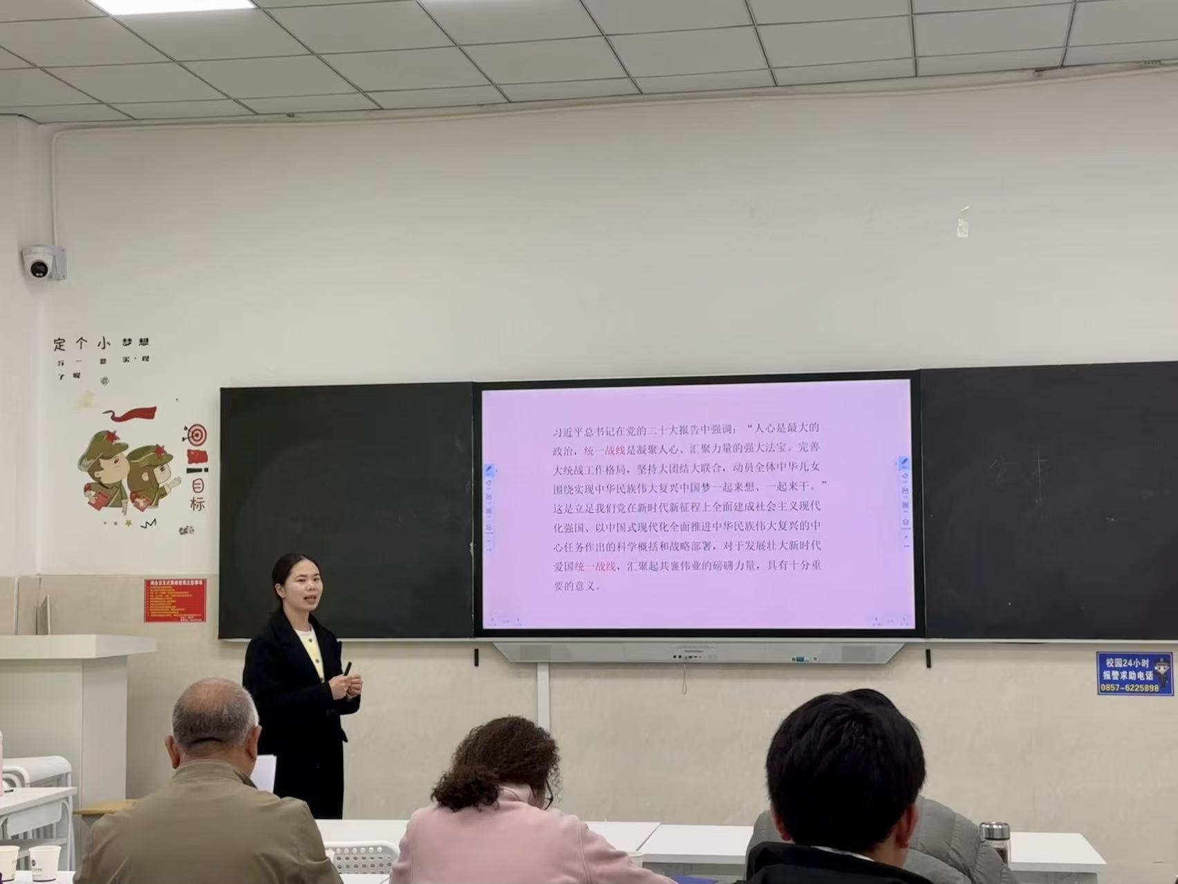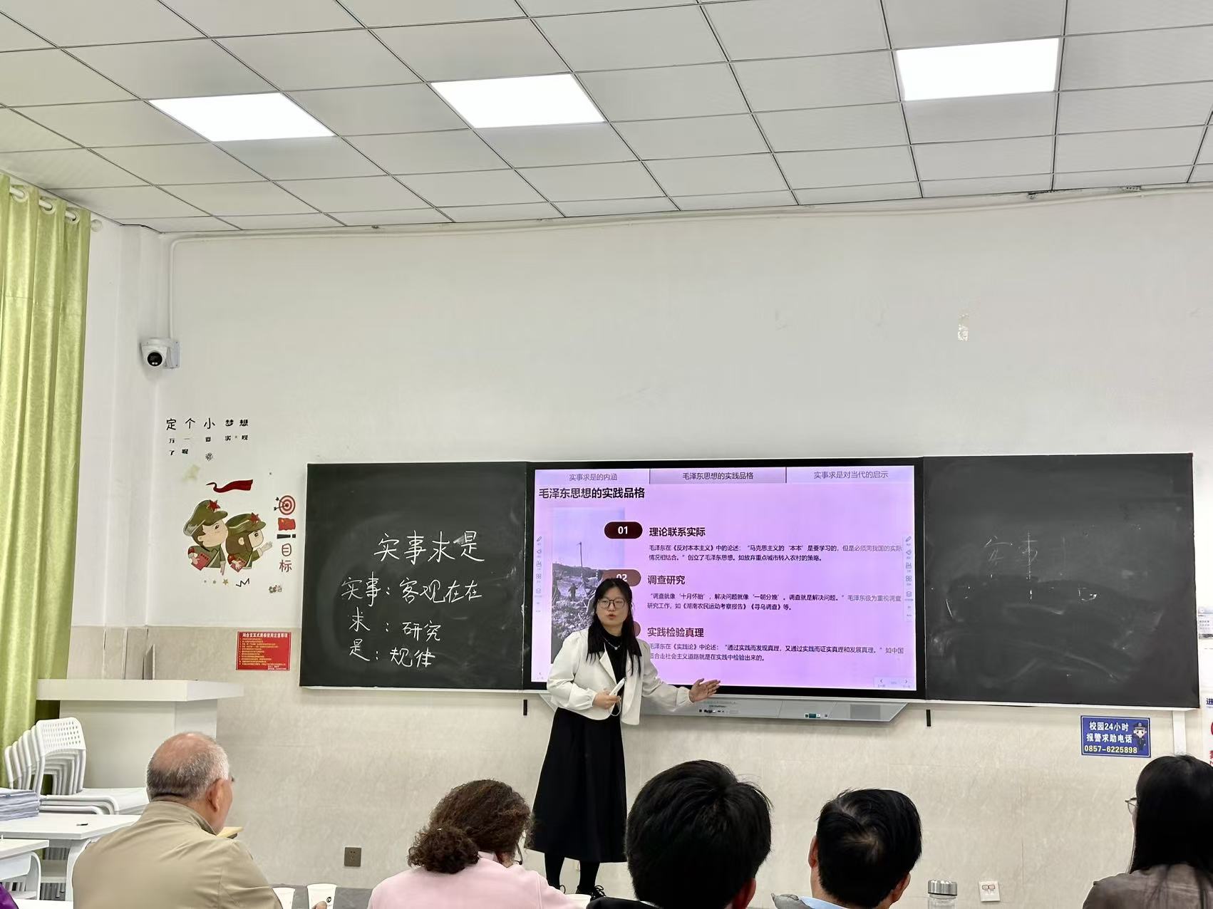 比赛现场,十四位参赛老师各展风采。他们从“习近平新时代中国特色社会主义思想概论”“毛泽东思想和中国特色社会主义理论体系概论”“思想道德与法治”“形势与政策”等思政课程中精心自选专题进行教学设计、教案撰写和现场教学展示。老师们聚焦学生学情,紧扣教学重难点,巧妙运用“大思政课”理念 ,以生动的故事、鲜活的案例、严谨的逻辑以及流畅的语言,将思政道理讲深、讲透、讲活,充分展现了学院思政课教师扎实的教学功底、丰富的专业知识和昂扬向上的精神风貌。