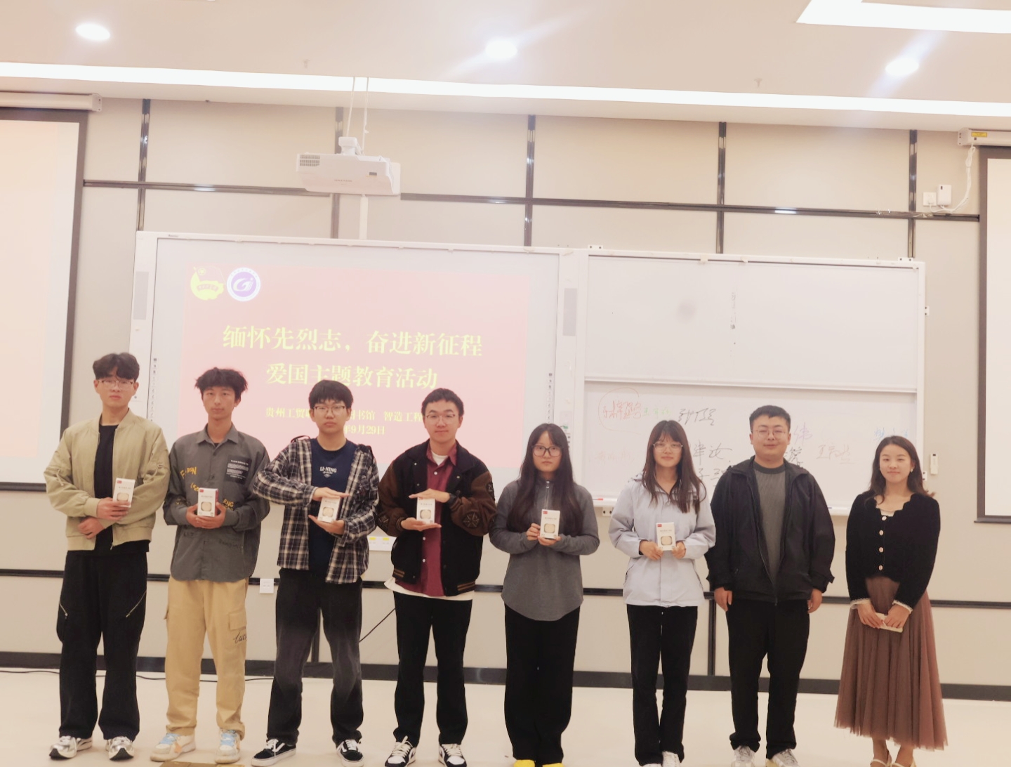 在第12个中国烈士纪念日(9月30日)来临之际,图书馆与智造工程学院联合举办“缅怀先烈志,奋进新时代”爱国主题教育活动。智造工程学院团委书记朱静静,图书馆教师马翔,学院学生会干部及2025级学生代表参与活动。活动在庄严的《中华人民共和国国歌》声中拉开帷幕。全体师生肃立齐唱,歌声嘹亮,展现了师生昂扬的精神风貌,激发了大家的爱国情怀与时代责任感。