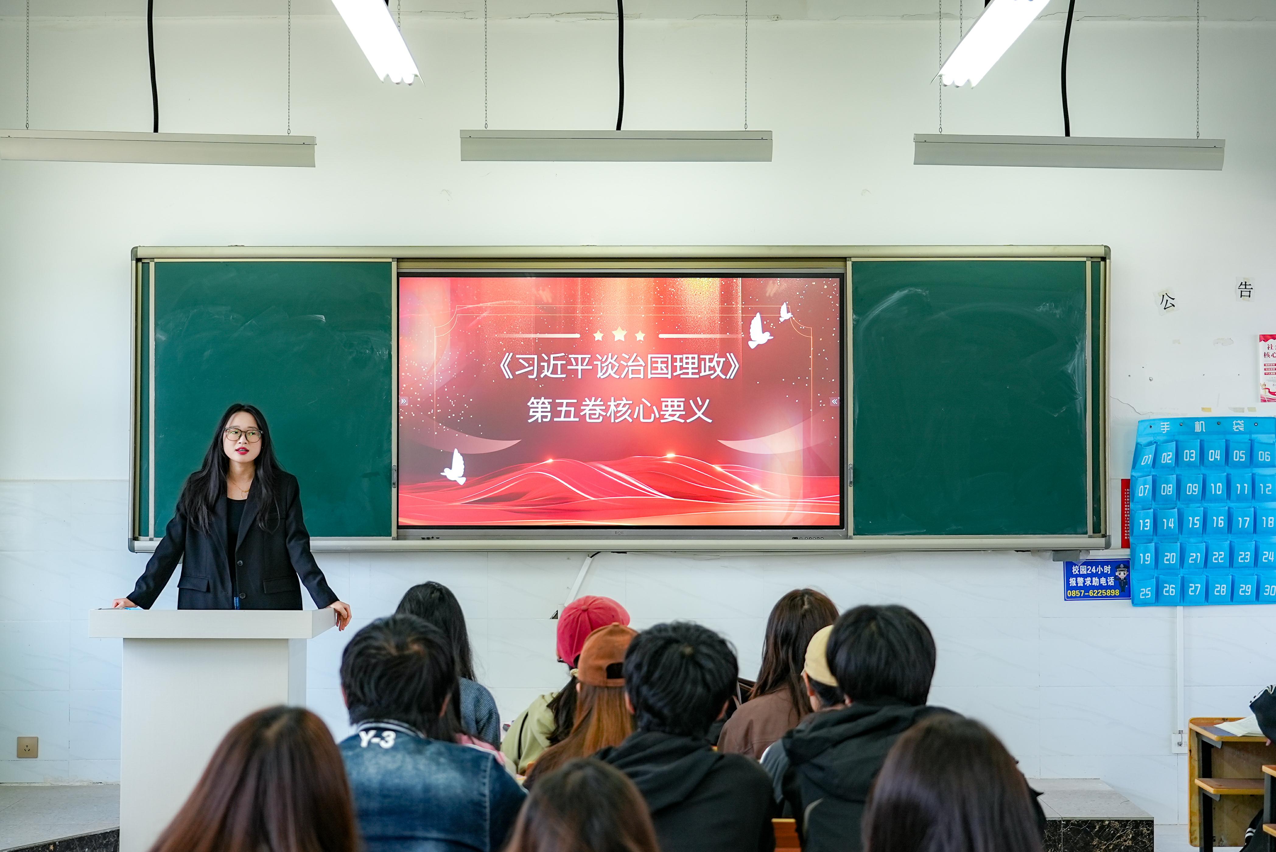 以“主题党日”筑牢理论根基,党员、教师先学一步。学院党支部将《习近平谈治国理政》(第五卷)作为核心学习内容,通过开展系列主题党日活动,组织全体党员、教师原原本本学、融会贯通悟。活动中,党员、教师们结合自身教学科研实际,深入开展交流研讨,深刻把握其思想精髓和核心要义,为将党的创新理论有效传递给学生打下了坚实的理论基础,实现了从“要我学”到“我要学”的积极转变。