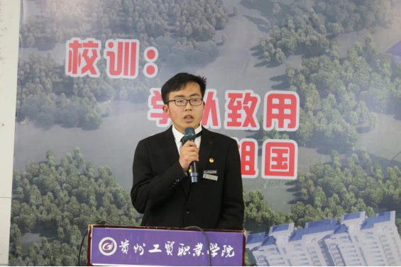校党委委员、副校长祁飞向获得“五四红旗团总支”的代表颁发奖牌