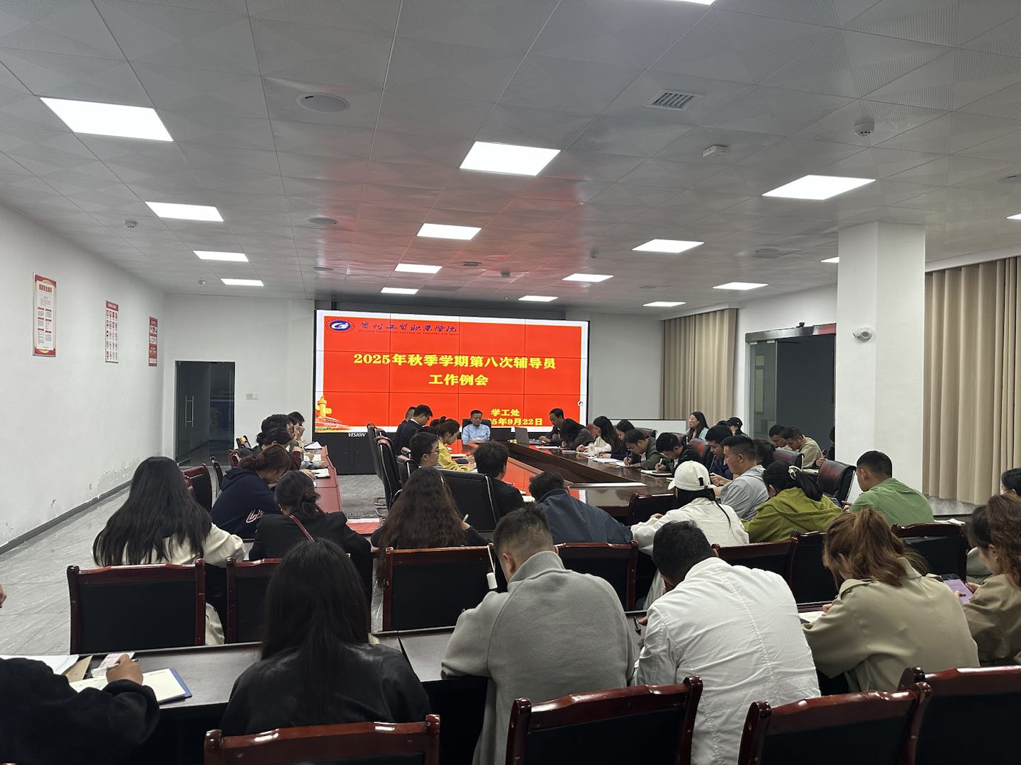 为进一步落实学生管理工作、筑牢校园安全防线、推进团组织建设与校园文化工作落地,9 月 22 日,学工处组织召开全校第八次辅导员工作例会,围绕学生管理、校园安全、团组织建设等核心工作部署推进。校党委副书记、纪委书记聂立新出席会议,学工处处长庹志兴、校团委书记江燕虎、保卫处副处长马永全及全体团学工作人员,各二级学院团委书记、学工科长及全体专兼职辅导员共同参会。