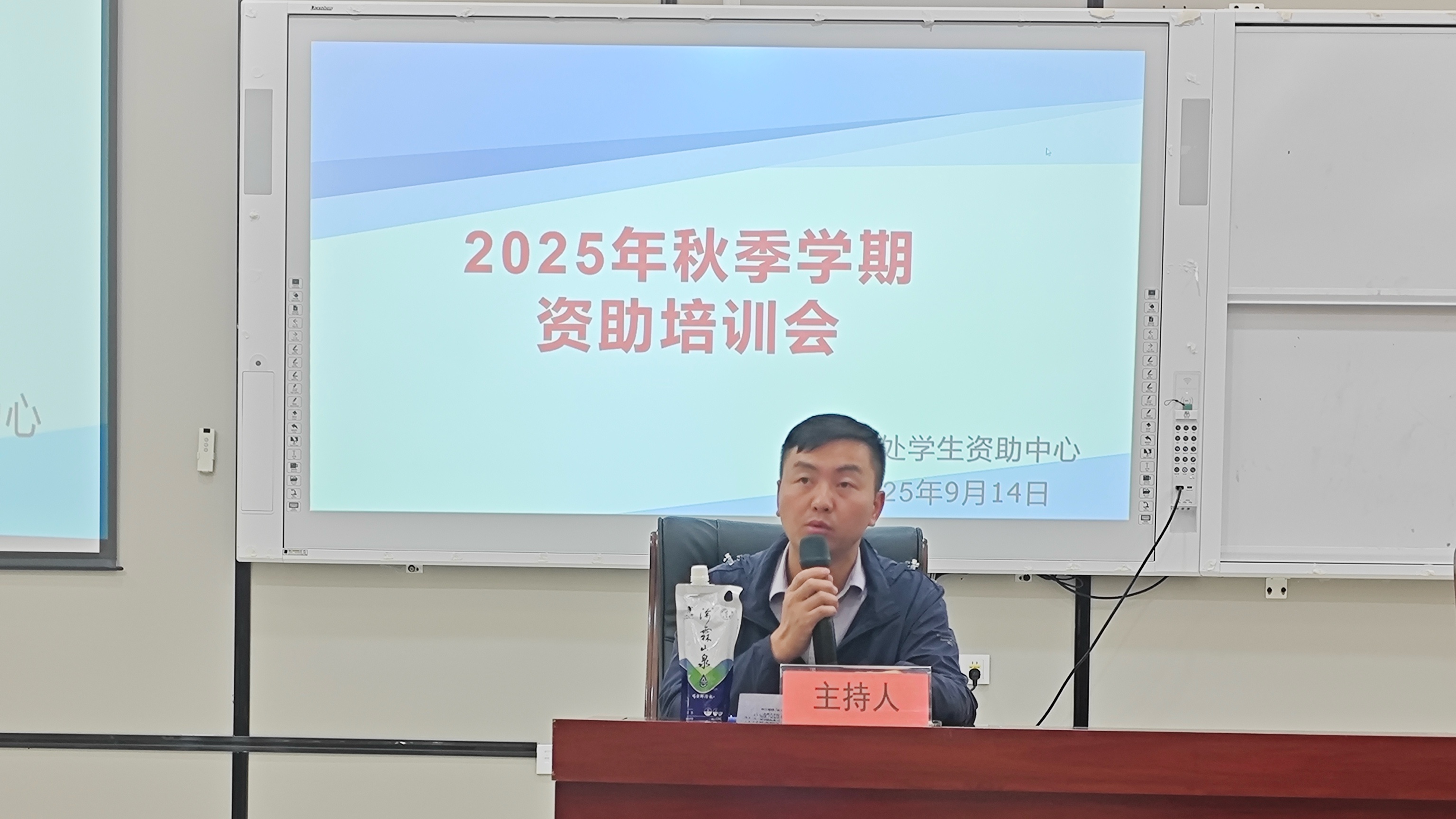 为进一步落实国家奖、助学金资助政策,提升beat365资助评审工作水平,确保资助工作公平、公正、公开开展,校党委副书记、纪委书记聂立新,学工处处长庹志兴,学工处资助中心,全体辅导员及学生干部于9月14日在图书馆负一楼报告厅开展了2025年秋季学期学生资助培训工作。会议由庹志兴主持。