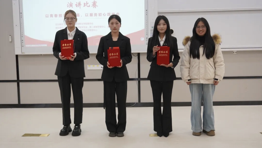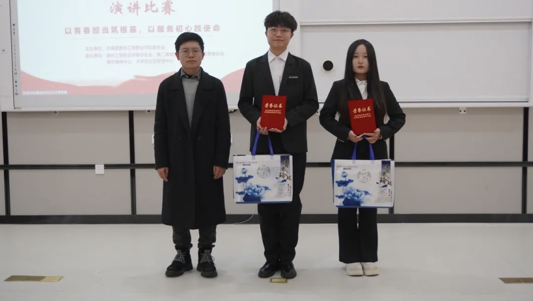 随后,评委们从演讲内容、语言表达、现场效果等方面对选手进行了综合提问与考评。经过激烈角逐,最终评选出一等奖2名、二等奖3名、三等奖4名及7名优秀奖。