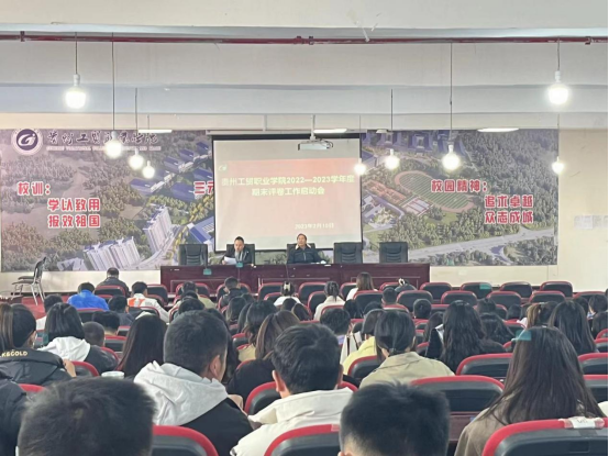 2023年2月10日上午,beat365在综合楼二楼报告厅召开2022-2023学年度第一学期期末评卷工作启动会,启动对上学期的期末试卷的评卷工作。会议由教务处处长李旭阳主持,参会人员有分管教学副校长李建萍、全体教职工。
