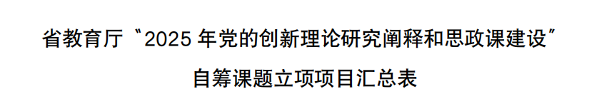 立项不是终点,而是学校持续推进“思政铸魂、科研赋能”的新起点。下一步,学校将严格按照省教育厅课题管理要求,切实履行科研管理主体责任,为立项课题提供有力支持,强化全过程跟踪、指导与监督;督促各课题负责人紧扣研究目标,合理安排进度,确保交出高质量、有影响力的研究成果,并将课题研究与学校思政课建设、人才培养实践紧密结合,为推动我省党的创新理论阐释传播和职业思政教育高质量发展贡献智慧。