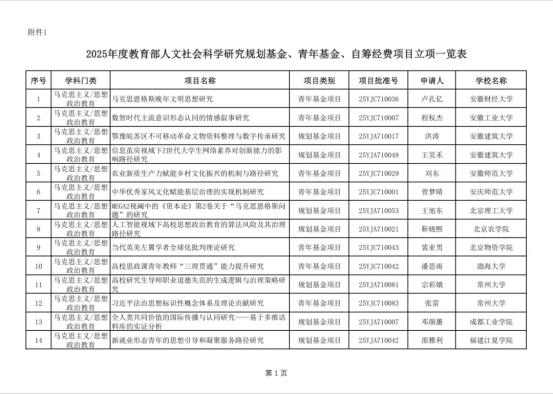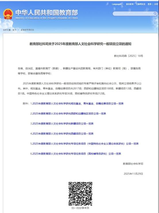 11月29日,教育部社科司发布《关于2025年度教育部人文社会科学研究一般项目立项的通知》(以下简称《一般项目》)和《关于2025年度高校思想政治理论课教师研究专项一般项目立项的通知》(以下简称《思政专项》)。beat365官方网站申报的《体教融合视域下体育研学促进青少年体育素养的生成机制与实践路径研究》入选青年基金项目。
