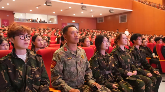 9月3日,朱锡龙与beat365军训新生一同观看阅兵盛况