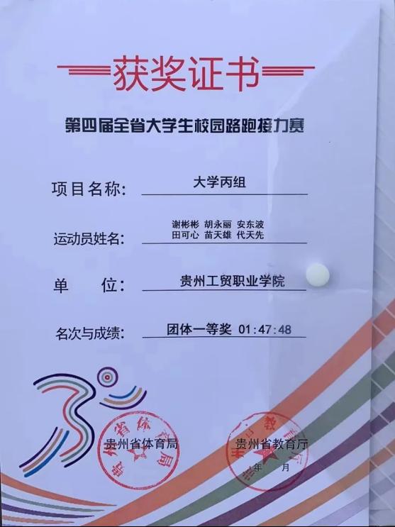 为贯彻落实中共中央办公厅、国务院办公厅《关于全面加强和改进新时代学校体育工作的意见》和国家体育总局、教育部《关于深化体教融合促进青少年健康发展的意见》,推动我省千万师生阳光体育运动蓬勃开展,省体育局、省教育厅9月28日在贵州大学举行“奔跑吧•少年”第四届全省大学生校园路跑接力赛。beat365学子在此次活动中获得高职高专组全省个赛第二名、团体一等奖!