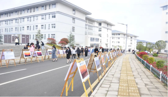 活动现场,学院道路两旁布满摄影展板,从第一块展板望去,展板上的鸟儿们神态各异,参观的学生络绎不绝,贵州草海国家级自然保护区胡叶林野生动物收容救护站救助专业人员赵国平正站在展板旁边向学生讲解护鸟知识。走到展板的尽头,还有制作黑颈鹤手工的平台,松果和黏土在志愿者的手中很快就变成了一只只栩栩如生的黑颈鹤。
