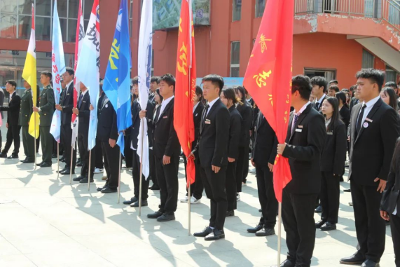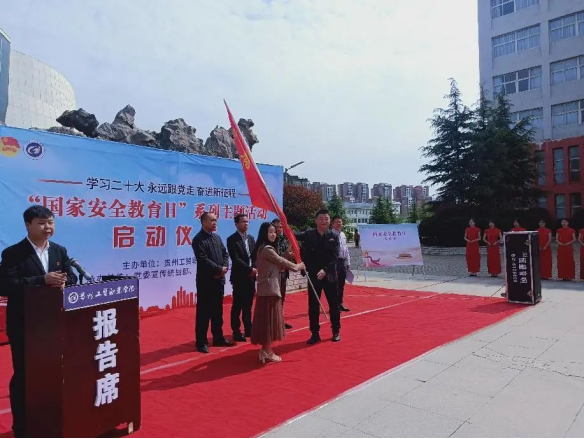 启动仪式在庄严的国歌声中拉开了序幕。学校党委委员、校长助理杨金钱宣读了《关于开展“国家安全教育”系列主题活动的通知》。接着,学校党委委员、副校长宋新乐为校团委授旗,授旗结束后,学工处处长杨春带领全体师生在进行了宣誓。随后,学生代表张秋叶以“国家安全无小事,工贸学子有担当”为主题进行了发言。