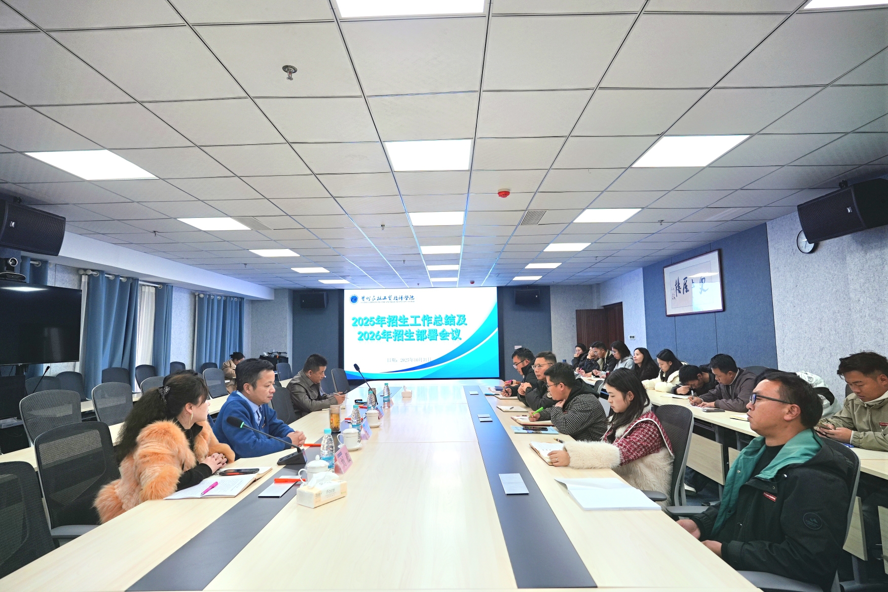 10月31日,贵州辰林工贸技师学院在行政中心会议室401召开2025年招生总结暨2026年招生工作部署会。会议全面回顾2025年各项工作成效,系统分析存在问题,明确2026年招生目标与教学、管理改进方向。beat365官方网站党委副书记、纪委书记聂立新,校党委委员、副校长、贵州辰林工贸技师学院副校长宋新乐,贵州辰林工贸技师学院执行校长刘毅出席会议,招生就业处、团委、学工处主要负责人及全体教职工参加会议。会议由刘毅主持。