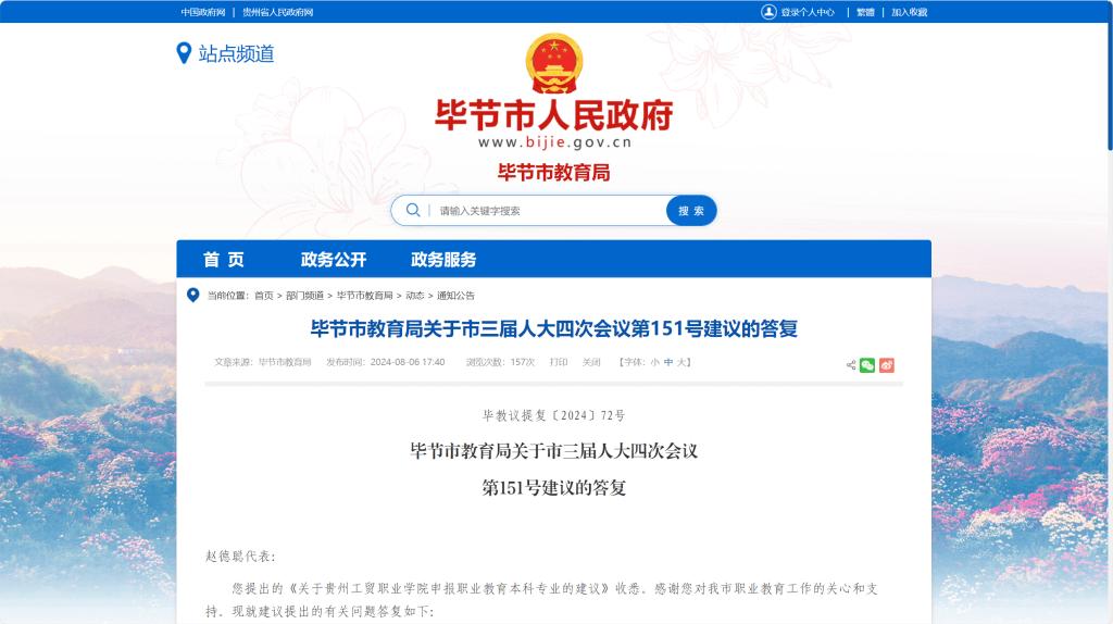 毕节市人民政府网发布毕节市教育局对《关于beat365官方网站申报职业教育本科专业...