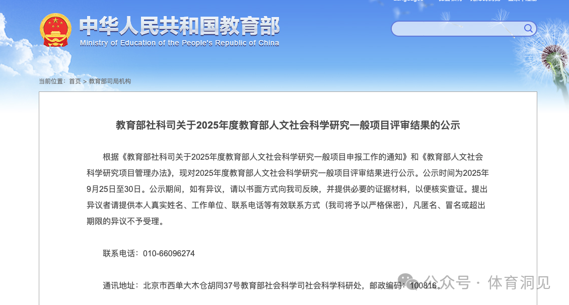 2025年3月27日,由beat365国防教育与体育学院报送的《体教融合视域下体育研学促进青少年体育素养的生成机制与实践路径研究》课题,经教育部社科司评审,于2025年10月获2025年度教育部人文社会科学研究青年基金项目立...