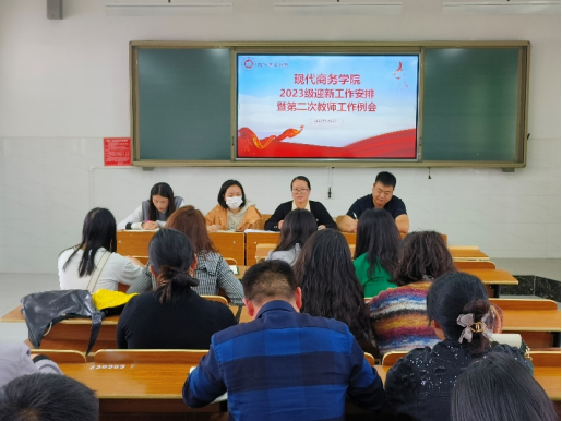 为认真做好2023级新生入学报到和接待工作,8月25日,现代商务学院召开2023级新生入学工作部署会议。院长杨一梅、各部门负责人、辅导员及科任老师参加了本次会议。此次会议重点安排新生接待工作,杨一梅就新生报...