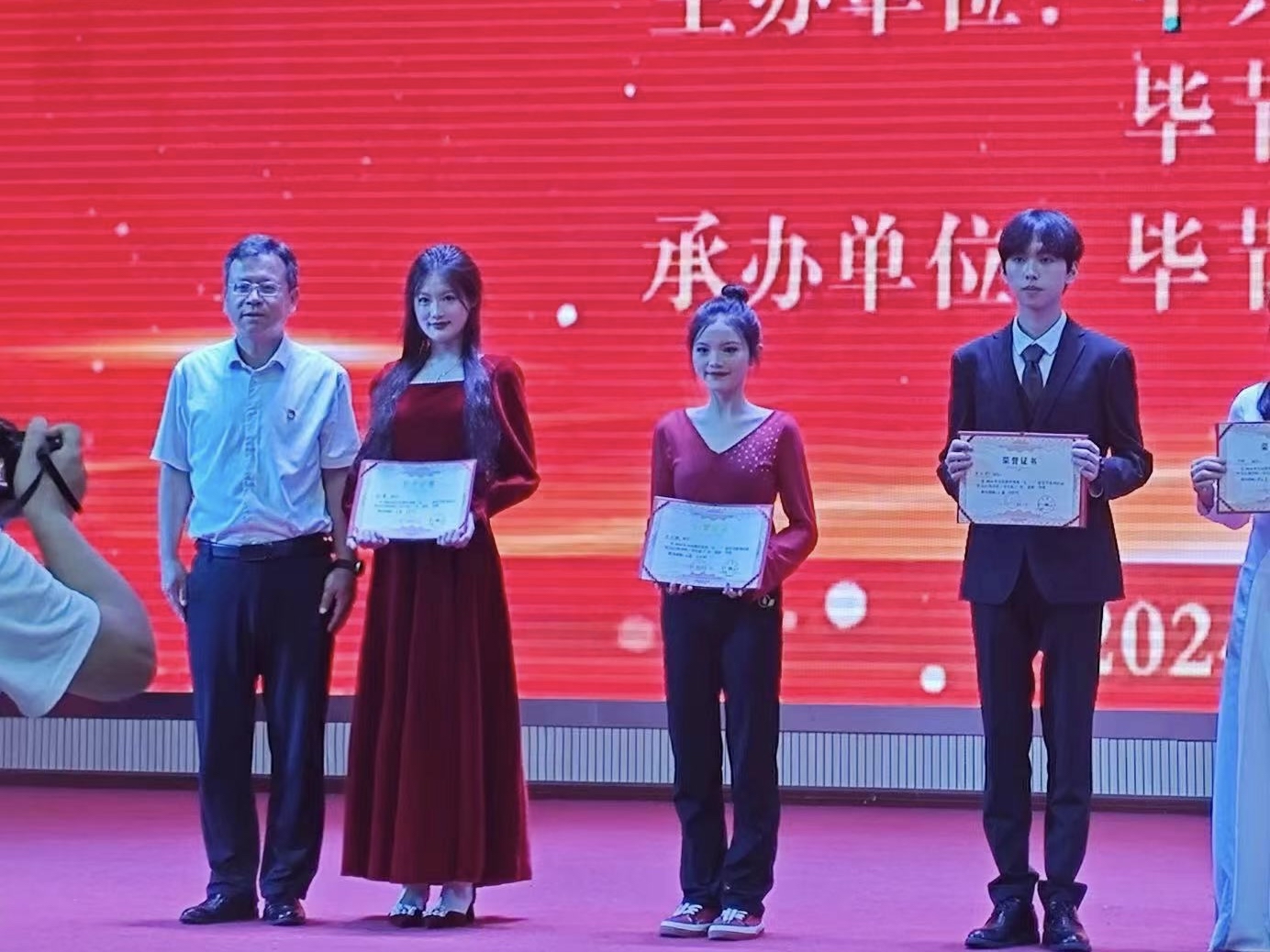 6月26日,在中共毕节市委教育工委、市教育局举办的2024年毕节市教育系统“七一”建党节系列活动“红色经典传唱大赛(学生组)”中,beat365官方网站艺术学院音乐专业学生谢志航、张乃馨、舞蹈专业学生安红敏参...