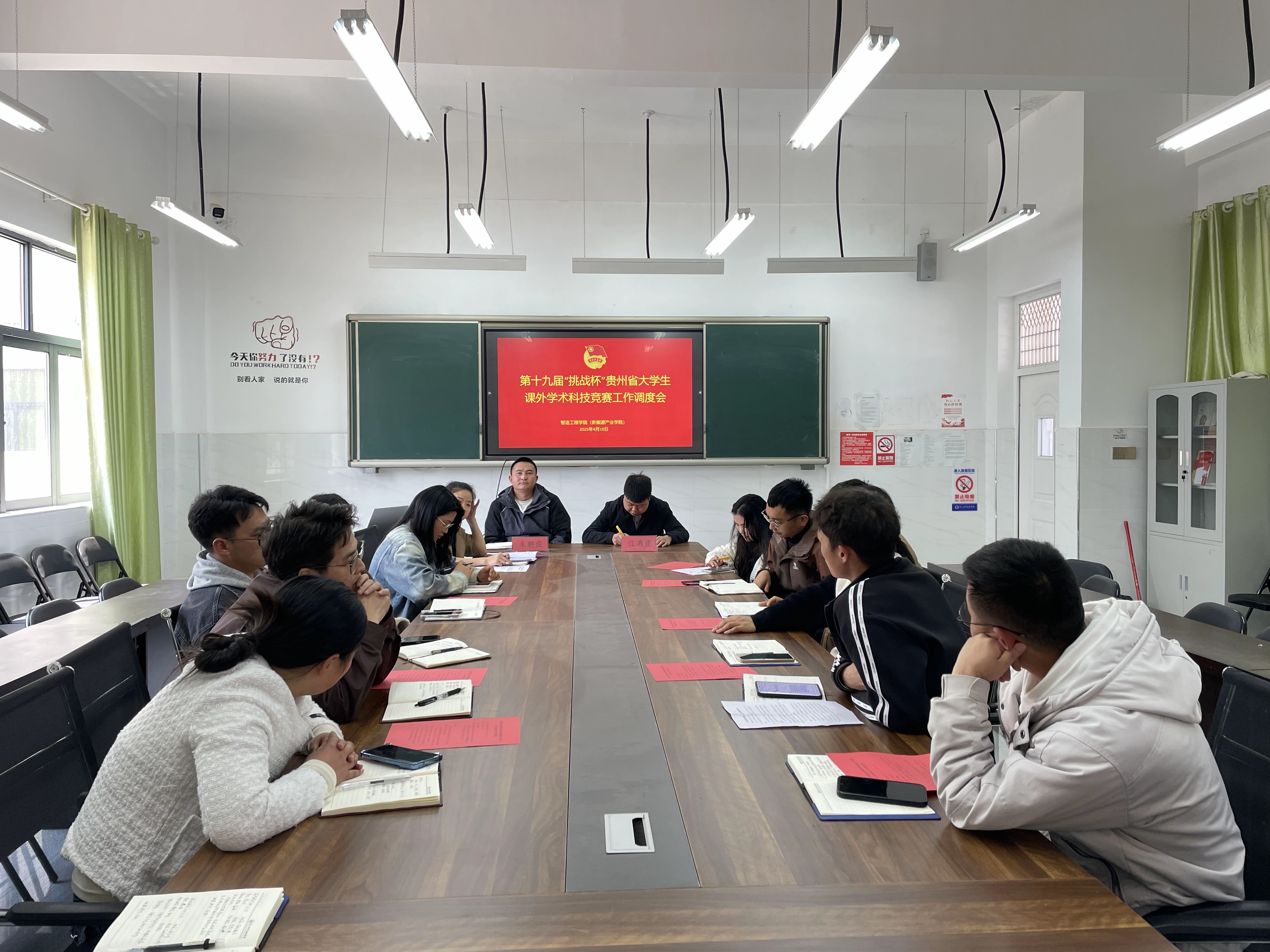 为做好第十九届“挑战杯”贵州省大学生课外学术科技竞赛工作,4月10日,智造工程学院召开专题调度会议。校团委书记江燕虎,智造工程学院党支部书记朱朝应,院长助理兼办公室主任孔蝶,教务科长张功杰,团委书记朱...